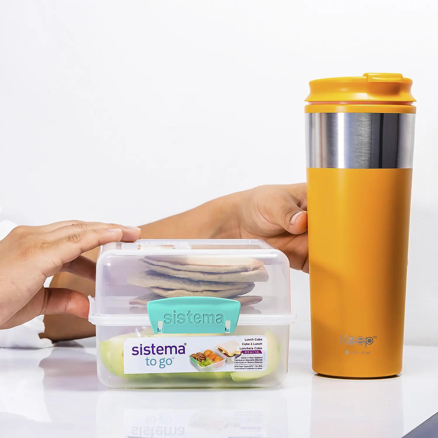 • El COMBO termo + Sistema® Lunch Cube TO GO™ es perfecto para transportar su almuerzo bebidas calientes o frias y refrigerios al trabajo, la escuela o el parque y, al mismo tiempo, ayuda a reducir el uso de bolsas de plástico, film transparente y papel de aluminio.